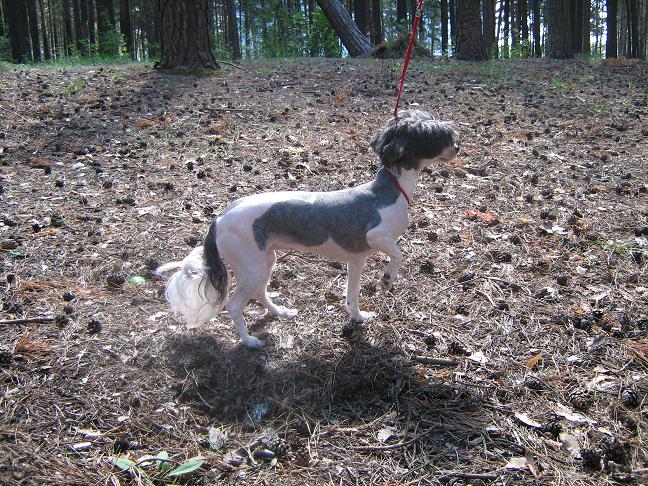 .Начну с того, что мне всегда безумно нравились собаки (независимо от породы) двух окрасов: коричневого и черно-белого. А любимая порода одна – Пудель! Ну с шоколадом все понятно, к тому времени я уже 5 лет жила мыслью о появлении в доме коричневого пуделя, а вот об арлекине я в то время еще и мечтать не могла, все это было очень далеко и не реально. В августе 2003 года, в питомнике моей подруги, родился помет Китайских Хохлатых, 7 щенков: 6 голышей и 1 черно-белая пуховка, ну так вот эта пуховка и покорила меня с первого взгляда. Ну я вовсе не собиралась расширять количество пород и целых 1,5 месяца отчаянно боролась со своим желанием и с подругой, которая знала о моей патологической любви к «пати-колору». Но видимо плохо боролась, потому что в конце сентября из очередной поездки к подружке в гости я вернулась с очаровательным черно-белым комочком. Комочек назвали Люся, а официально – Манзана де Оро Вайтел ту Саксис. |