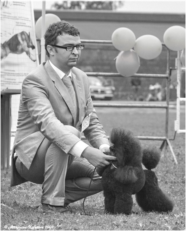 Немного дополню результаты по малым пуделям. Их (нас) было всего 3 девочки. Фотографий к огромному сожалению нет. LEDY CHIC, абрик., кл. чемпионов (Eralash iz Doma Tajur X Bly Ais Patricia), зав. Шапран О., вл. Комар. В. - CAC, Чемпион РКФ, CACIB, BOB. О-о-о-очень красивая, стильная, прекрасно подготовленна девочка Божественная Комедия для г-жи Паниной, коричн., кл.открытый (Есаул Удалой их Дома Таюр X Принцесса На Горошине) зав. Ильинская, вл. Рыжова - CAC, Чемпион РКФ, CACIB, BOB. Низкий поклон заводчице и лично Светлане Паниной за такую потрясающую мою собаку. Якутская песня из Дома Таюр, черн., кл. открытый (Эверест из Дома Таюр Х Лебедушка из Дома Таюр) зав. Калинины, вл. Сафонова Е. - дебютантка, девушка замечательная во всех отношения, превосходная чернющая шерсть, красивейшая голова, корпус..., но к сожалению чуть-чуть не хватило выставочного опыта хозяйке. Они вторые в классе. У них всё в переди и УДАЧИ им! У всех малых пуделей, участвовавших в этой выставке, один или оба родителя, разведения питомника "Из дома Таюр". Огромная благодарность владельцам этого питомника за их труд! (не совсем "по теме", но от всей души) Ещё раз всех поздравляю с победами!!! |