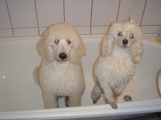 Все нормально... Просто слишком долго сидеть за компом не могу, до собаки, то ребенок... Но пока под контрольно :))) А по поводу включиться, так я ж писала включайтесь все!!!! :)))))) И не обижусь конечно же!!!! Немного продолжу о себе :) Вторую карликовую девочку после того как отобрали первую собаку, мы уже купили щенком, и чтобы она была только "нашей"... И купили не только собачку... а для меня, т.к. я пошла в школу... и очень с трудом меня будили, то ли не просыпалась то ли специально не вставала.... не знаю... а как только Рикусю звали на мою кроватку, так я мигом вставала, и пока я играла с ней, меня мама одевала и собирала :)) Учила дресировке вместе с ней, то бишь ставила барьеры, я на четвереньках прыгала через барьеры и собака со мной, бегала по кругу, собака со мной, рычала, собака со мной тоже рычала.... В общем делали мы с ней дружно вместе... Из-за того что много с ней времени проводила, и бегала на четвереньках... то меня прозвали маугли :)) Не помню уже в каком классе, но уже стало стыдно бегать по квартире с ней на карачках :))) Собака просто по характеру улет!!!! Она один раз не ослушалась нас, это когда мы встретились с хозяевами на улице, а с ними была собака, Рикина мама, а когда пошли по домам.. и я вижу, что Рики идет рядом с мамой и идет в сторону домой... :))) Пришлось сказать что все таки дом ее другой :))) Она выставлялась очень мало.... Но брали мы первые по третьи места легко, несмотря на то что мы неопытные хэндлеры, а раньше в рингах выходило по 10-15 особей... Помню только что ринг просто кишал этими собаками, причем одного окрасу и одной ростовидности :) Прожила собака со мной всю мою школьную жизнь и несколько курсов института... Жалко только что фотки до сих пор никак не достану... Как достану и сразу выложу...... ******************************* Ну и немного моего стандарта.... Вот он такой вырос, там видно хорошо процесс линьки, чесала его каждый день то там то тут.... сегодня передние лапы, завтра задние, когда гриву, когда топ.. и разбирала все колтуны... Ужас, но в то же время нравилось, очущалось то что это действительно Большой пудель :)))))) |