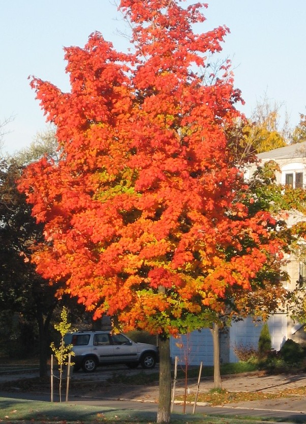 А это знаменитый канадский "черный клен".... Когда смотришь на него издалека, он сильно отличается по цвету от обычного клена...