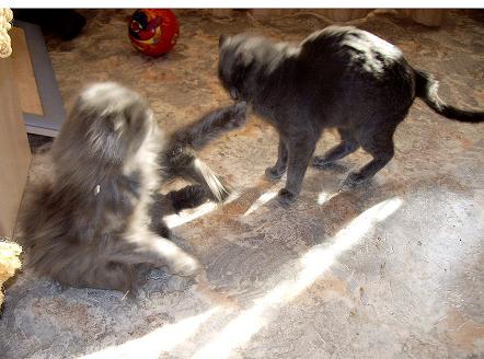 , но просто не могу не повесить здесь серию этих картинок. Впервые удалось заснять игру кошек. а начиналось все так: я сижу за компьютером, Капа безмятежно валяется на полу возле стола. |