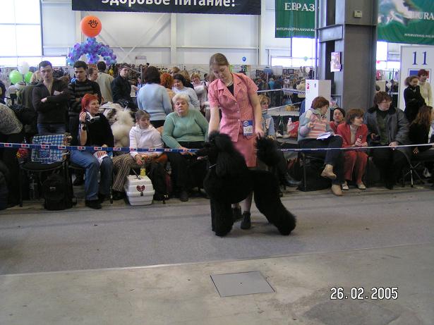 Кошмар и ужас на регистрации в первый день - и великолепное - во второй день. Толкотня и духота возле рингов, грязь - убирать стали практически только к концу дня - и самое ужасное: поведение "отдельных" собаководов, совершенно не гнушающихся "нагадить" у ринга пуделей и быстренько "слинять", неубрав за своим питомцем. Растертое по всему полу ногами - создавала такой "аромат", что "душегубка" по сравнению с этим - была, наверное, раем земным. "Оторвавшись" на карликах, эксперт сменила гнев на милость в малых, а уж стандартам повезло еще больше. Собаки были во многом очень хорошего качества - было очень приятно смотреть на возросший уровень нашего поголовья - хотелось бы побольше, конечно, видеть среди победителей пуделей российского разведения. (Не в обиду "иностранцам" - надеюсь они внесут огромную лепту для улучшения поголовья пуделей России) vera-Tim добавил(а) [date]1109541527[/date]: Эксперты: Сандра Мешфорд (Австралия) - стандартные, малые, карлики; Петру Мунтян - тои _______________________________________