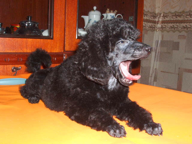 ой, я сначала их вымыла, потом постригла, потом они немного поели, устали. Потом отфоткала всех в стойке, а последняя Сера так устала, что легла и стала зевать, ну мы её фоткать, а к тому времени и остальные притомились, ну мы и их к ней подложили. Поначалу и они покрутились, а потом им похоже понравилось позировать и они в течение нескольких минут лежали и хвостиком виляли.