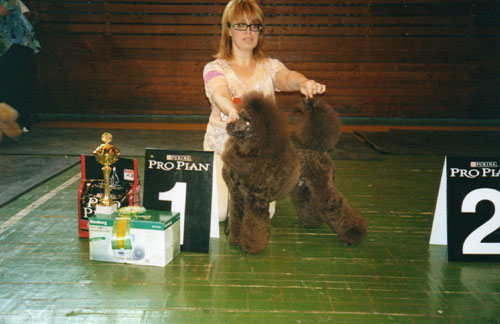 ЗЛАТО СИБИРИ НЕЖЕНКА (Фэйри Дэнс Сокол Ясный + Барышня Мэри из Дома Лопатских) Моно: отлично 2 Всепородная: отлично 1 МАЛЕНЬКАЯ ПРОКАЗНИЦА (Rusch Min Kasseri + Барбара Стрейзанд из Дома Лопатских) Моно: ПК, ЮП СПК, ЛС, ЛПП, 4 место в конкурсе миниатюрных пуделей Всепородная: оч.хорошо Класс открытый ЛУННАЯ КРАСОТКА ИЗ СИБИРСКОЙ СКАЗКИ (Чарльстон + Делисс Серпантин Ульрика) Моно: ПК, КЧК Пудель малый Окрас черный Кобели Класс чемпионов ЗВЕЗДОЧЕТ С ТАИНСТВЕННОГО ОСТРОВА (Классический Альянс Аллегро + Бижу с Таинственного Острова) Моно: ПК, КЧК, ЛК Суки Класс юниоров АНГАРА СВЕТ БАЙКАЛА (Inapats Tempation + Диско Сью) Моно: ПК, ЮП СПК Всепородная: оч хорошо _______________________________________