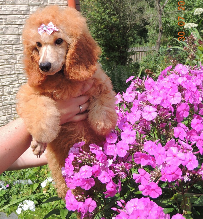 Отец - Джентли Борн Харлей Ланц, окрас черно-подпалый. Юный Чемпион России, РКФ, Породы, Юный Гранд Чемпион,Чемпион России, РКФ Мать - Dzholli Star Hot Love, окрас красный. Интерчемпион, Мультичемпион, Гранд, Клуба, РКФ, и т.д. Эта девочка очень интересна для разведения пуделей черно-подпалого окраса. _______________________________________