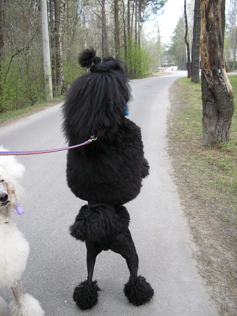 Раньше, когда Луна была маленькая, она опиралась передними лапами на спину мамки Кокоши, но я не разрешала ей так делать! Пачкала ведь. Теперь встает каждый раз на задние лапы, когда видит что-нибудь интересное! Стоит сама, поводок свободен!