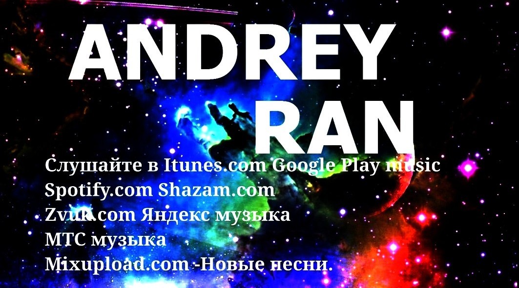 Встречайте новые релизы - Andrey Ran в Itunes.com ( Apple music) Amazon.com Gooogle Play Music Deezer.com Spotify.com Shazam.com Яндекс музыка МТС музыка Mixupload.com ....