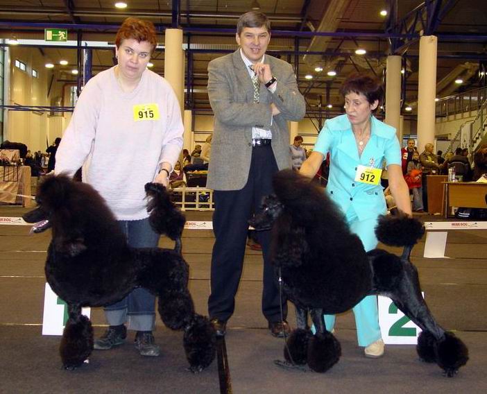 Это второй день, выставка в Вильнюсе 04-12-2005. 1.Сравнение на лудшую суку: СHANSON D`ETE REINE DE LA LUNE и VOLZHSKIY TALISMAN JACQUELINE IDEALNAYA LADU 2. Лудший в породе DAWING MIGHTY KNIGHT и Лудшая сука CHANSON D`ETE REINE DE LA LUNE |