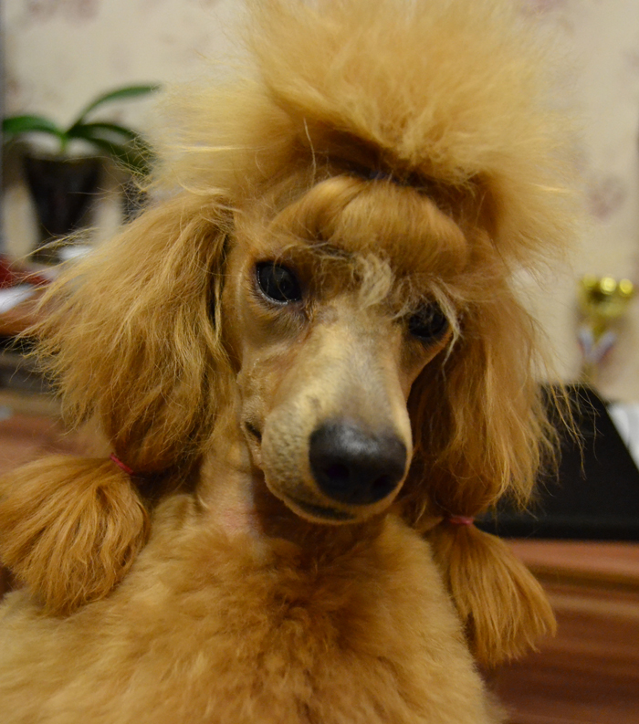 Мальчик, которому всего 13 месяцев, только что перестриженный в континенталь имел феерические выходные, выиграв Winners Male в Четверг и Пятницу, затем 2 резерва, (Reserve Winners Male at the Poodle Club of Canada Specialty), затем закончил Чемпионат получив Best of Winners с 5 points.