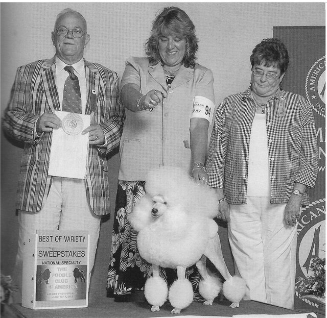 ![]() Это фотки с РСА-2004, она там была BOV под тем же судьей, что и на только что прошедшем Вестминстере. Фотка из журнала Poodle Variety Я их обеих "живьем" знаю - и хозяйку и собачку