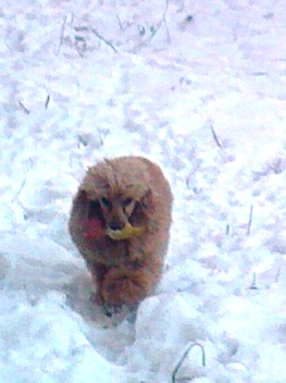 ![]() У нас сегодня выпал и пока лежит первый снег. Мы приняли от вас эстафету. Похоже Чипу связали новую кофточку? Патти настоящая охотница - по сугробам носит любимую игрушку.