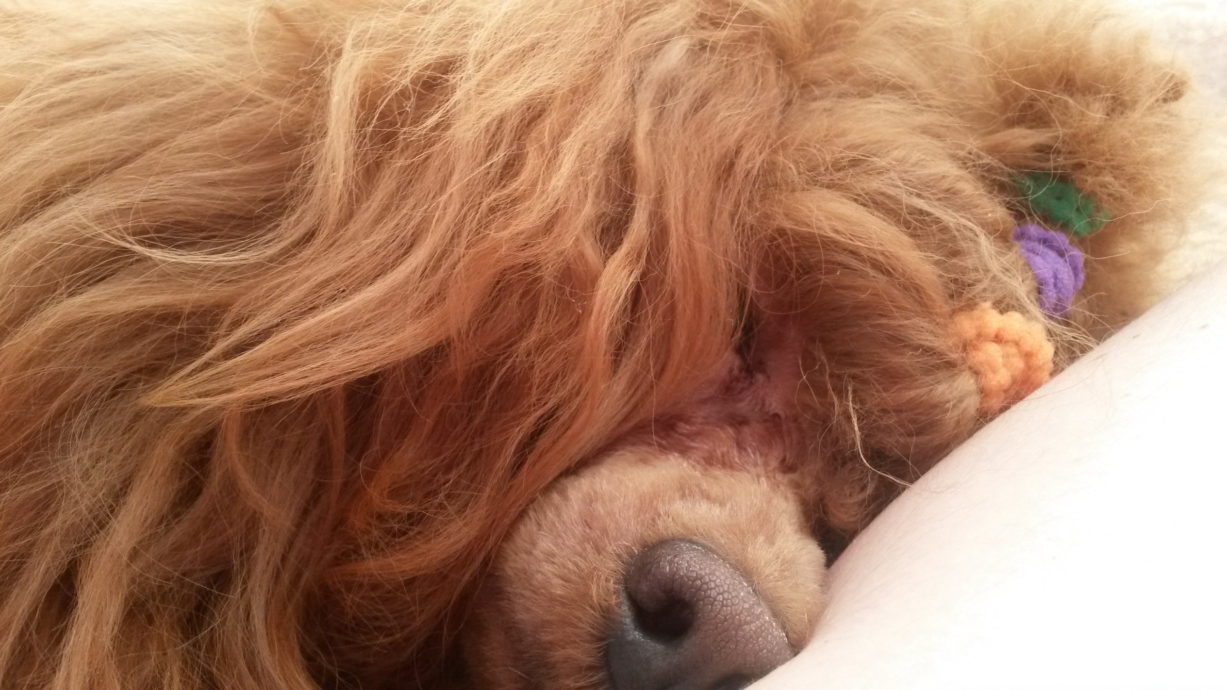 Добрый день. Я к вам за советом. Мы сейчас живем там, где грумеров нет и в помине. Собака у меня первая, поэтому делаю все что могу. Сейчас мы вот такие. Шерстку отращиваем специально,чтобы в отпуске (через 2 месяца) сделать что-нибудь красивое. Вопрос такой, хватит нам на льва? Уж очень хочется :) И еще, я завязываю резиночки, чтобы волосы в глазки не лезли ( сегодня целых 3 цветных завязала). Муж говорит, что я делаю из мальчика девочку...может быть есть "мужские" варианты завязывания :)