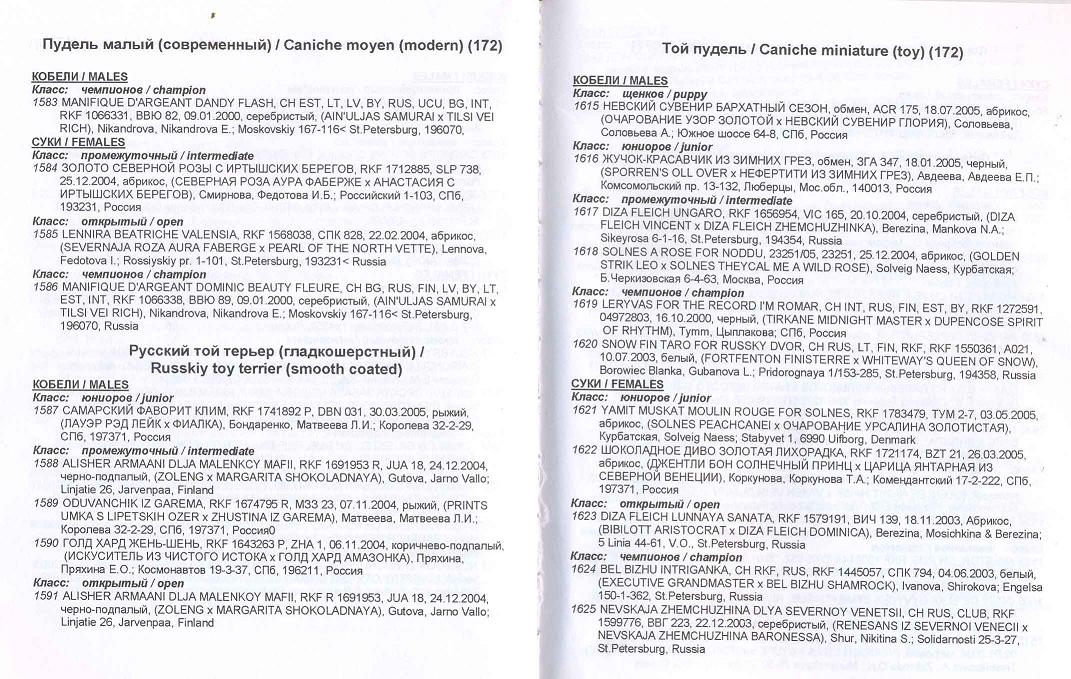 July добавил(а) [date]1145365314[/date]: Теперь то, что из результатов знаю: Больших не видела:( Малые классика: ВОВ 1580 BOS 1572 САС 1573, 1578 Малые современный: ВОВ 1586 Тои: ВОВ 1625 BOS 1618 Карликов тоже не смотрела, но обещаю про них спросить участников:) July добавил(а) [date]1145365795[/date]: Да, хэндлер у меня почти готов Думаю, на Белых Ночах дебютировать будем Она бедную Снежинку, которая впервые на выставке оказалась так "захэндлерила", что теперь та на улице постоянно к ней слева пристраивается и в глаза заглядывает ОФФ Ириске: твой Анрюша так постарался, что моя бедная старушка похоже побьет все рекорды рождаемости! Живот почти до пола уже, а ей еще минимум недели две ходить... Вот такой молодец-удалец!
