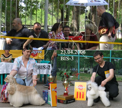 Эта собачка была зарегестрирована по каталогу в классе промежуточном, но при виде сопернице, очутилась сразу в другом классе, и оказывается, что у пуделя опученный хвост это преимущество!!!!. Эксперт говорит хендлеру:""Я понимаю, что эта не ваша собачка-поэтому она хвостик не подняла, ну нечего страшного, я вам даю САС,САС!В, ЛПП"". Вся выставка была в шоке. А остальных пуделей которых не выставлял Фомин оказались не пригодными к выставкам...... |
