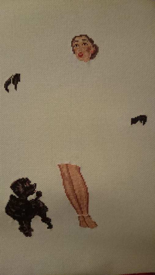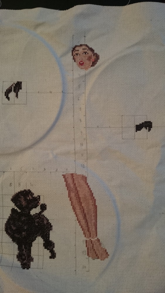 Далее не терпелось вышить пуделя. Расчертив его на канве, приступила к корпению над крестиками: