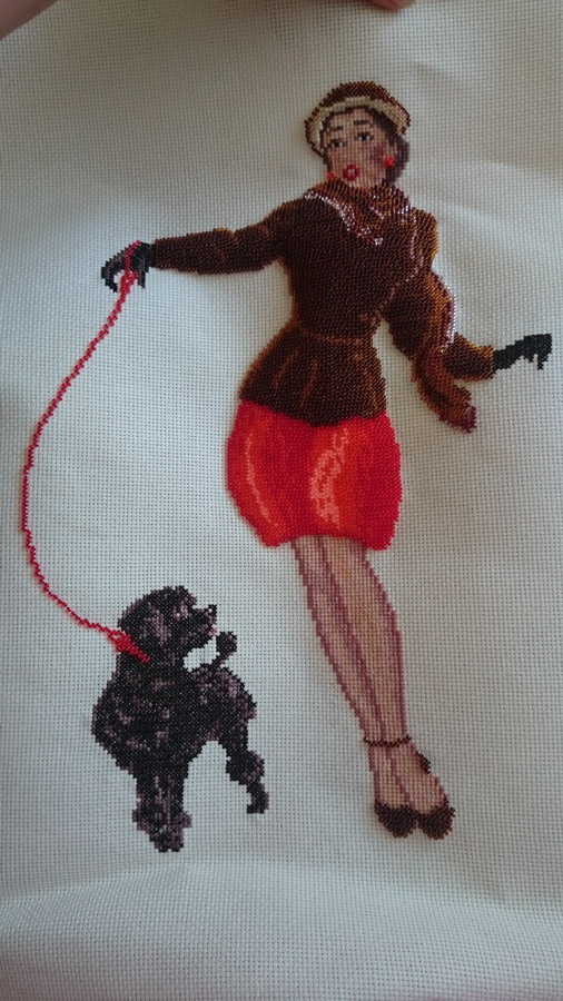 donna-anna, спасибо, я старалась! Вам осталось же не так много. Скорее доделывайте и показывайте свою красивую даму с пуделем без юбки! Очень интересно, когда у всех разные работы, хоть вышивка одна и та же.