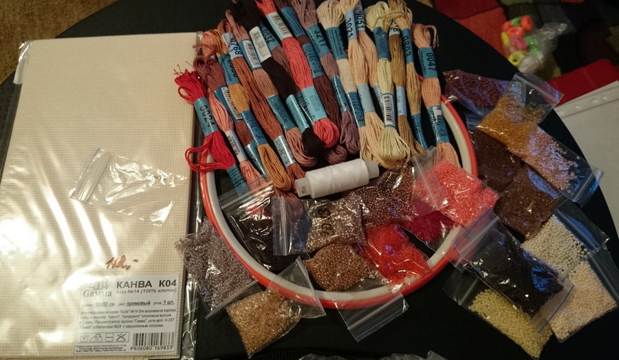 Я сегодня закончила вышивку, фуф, даже не верится и как-то грустно. Расскажу поэтапно о процессе. О третьей вышивки в моей жизни. Сначала я купила просто нитки и бежевую канву (не знала, что она рекомендована голубого цвета). Потом решила, что хочу крестик скомбинировать с бисером. Девочки консультанты в магазине рукоделия подсказали мне, что сначала лучше все вышить крестиком, а потом остальное бисером. Так удобнее. И так, все необходимое было куплено (как оказалось процесс вышивания затягивает, и хочется приобретать какие-нибудь удобности для этого, по-этому покупки на этом не ограничились))): Я решила сделать разметку карандашом, оказывается так и надо делать, это очень удобно: Первым вышила лицо дамы: Потом приступила к ножкам: _______________________________________