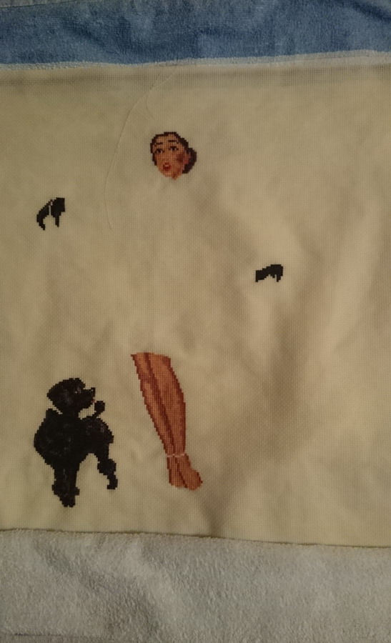 Далее не терпелось вышить пуделя. Расчертив его на канве, приступила к корпению над крестиками: