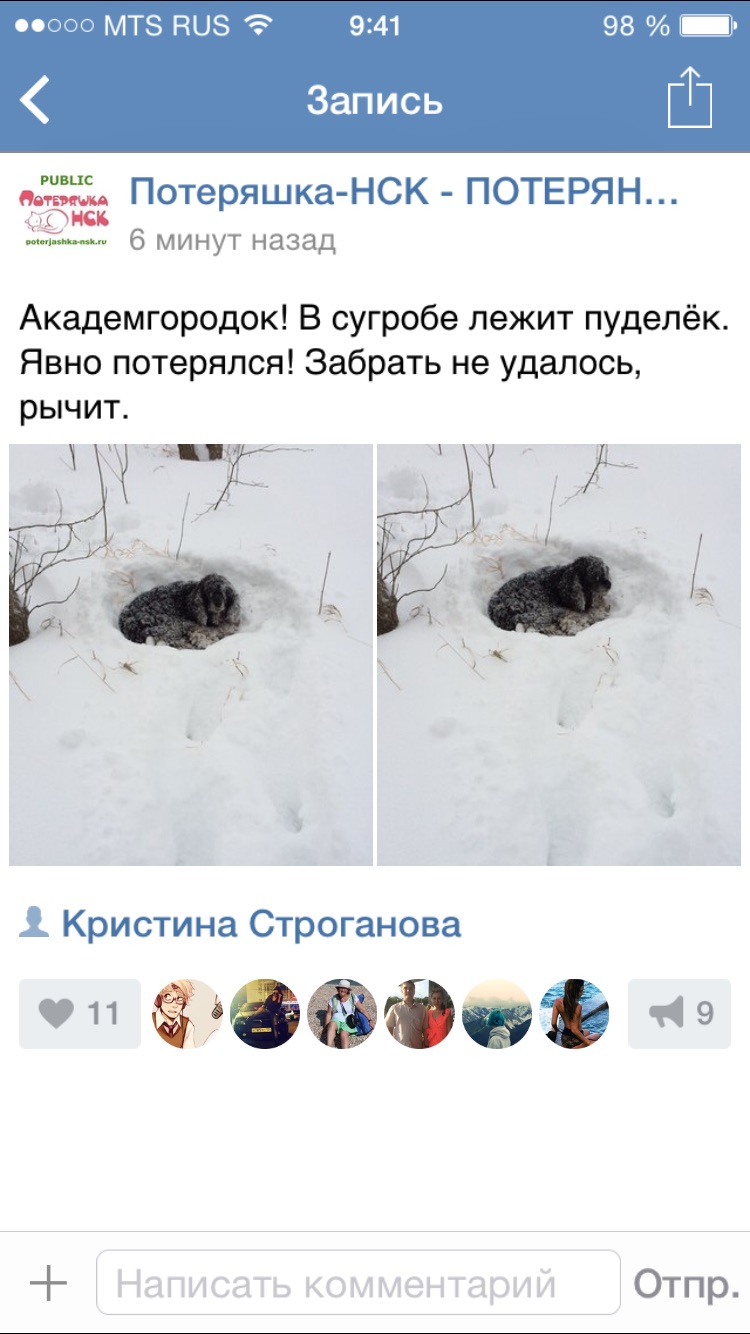 Только что сообщили. В Академе, в Щ в сугробе лежит серебристый пудель...я на семинаре, может кто - то глянет?