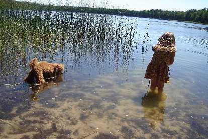Фелинке год, купались только вот 2 раза и то первый раз случайно забежала как в лужу - это было в городе и дома я её отмыла и отфенила :) а второй - вот поехали за 250 км от родного дома по делам и на море заскочили, без ночёвки, а летом обычно с палатками едем на неделю, а то и две. Без всякого электричества и т.д. У моей шерсть быстро сохнет на солнце и вообщем-то не успевает скатываться. Я вот думаю, надо ли её хотя бы пресной водой потом хоть без шампуня омывать? Или можно оставить бегать солёной? Felina добавил(а) [date]1152064421[/date]: augustin, расскажите, что вы делаете со своей doggy после такого вот купания