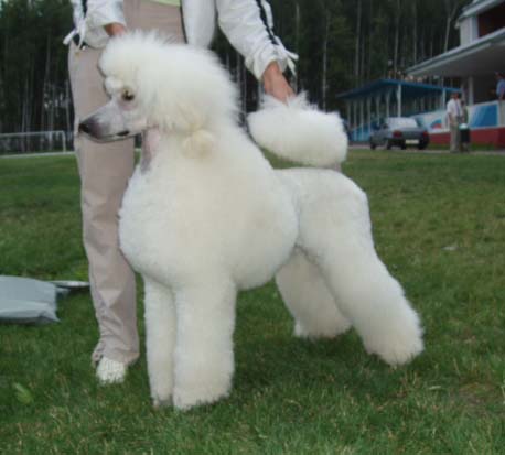 Я ездила со своей 9 мес. юниоркой и она обыграла в Казани взрослых девочек, а в 12 мес. на моно в Москве снова обошла всех взрослых и стала лучшим большим белым. На фото в 9 мес. она на улице.