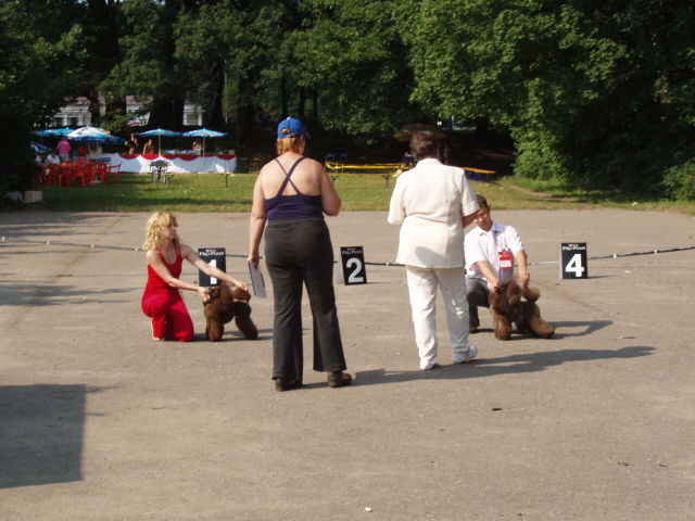 В трех словах , что успею(инет может закончится) Выставка проходила на стадионе. Погода была достаточно приятная, пару раз мелкий дождик освежал теплый воздух. Выставку судила Кизина из С.Петербурга. Пд этим экспортом я уже выставляла собак и довольно успешно и имела представление что ей нравится и какие критерии в оценки. Но к сожалению не учла человеческий фактор, с ним даже стандарт породы пудель не может сравниться…….. Ринг больших пуделей смотрелся на одном дыхании. Уж я то не любитель данной разновидности смотрела , как говорят: «Не отойдя от кассы». Большой черный кобель из питомника Блис Трайн -Де Ганд порхал по рингу как махаон. Не менее красив был белый кобель из Польши- Ever Lasting Lave Minarett, Но на фоне Гранда смотрелся тяжелее и загруженее шерстью. В классе юниоров была прекрасная сука из Германии Curonian Spit Cappella. В суках порхающее влетела молодая белая красавица с изумительной черной кожей. Quane White Sabine Ami Ra и по праву получила САС!В. На её фоне проще смотрелась Ginette Commtes vom Swinter Moor ВОВ у черного кобеля!!!!!!!!!!! |
