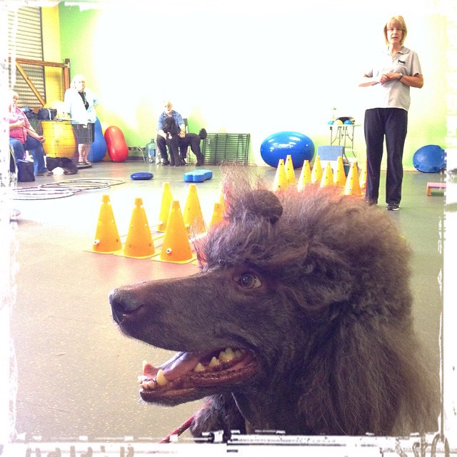 Под конец был небольшой блок по растяжкам. Инструктор выбрала Брайта в качестве демо-собаки. Спросила, не будет ли он возражать. За меня ответила Мишель: "это же пудель!" Брайт млел от растяжки, даже вставать потом не хотел (кто йогой занимается, тот его поймёт!) Инструктор была удивлена, сказала, что очень гибкая собака для 10.5 лет.