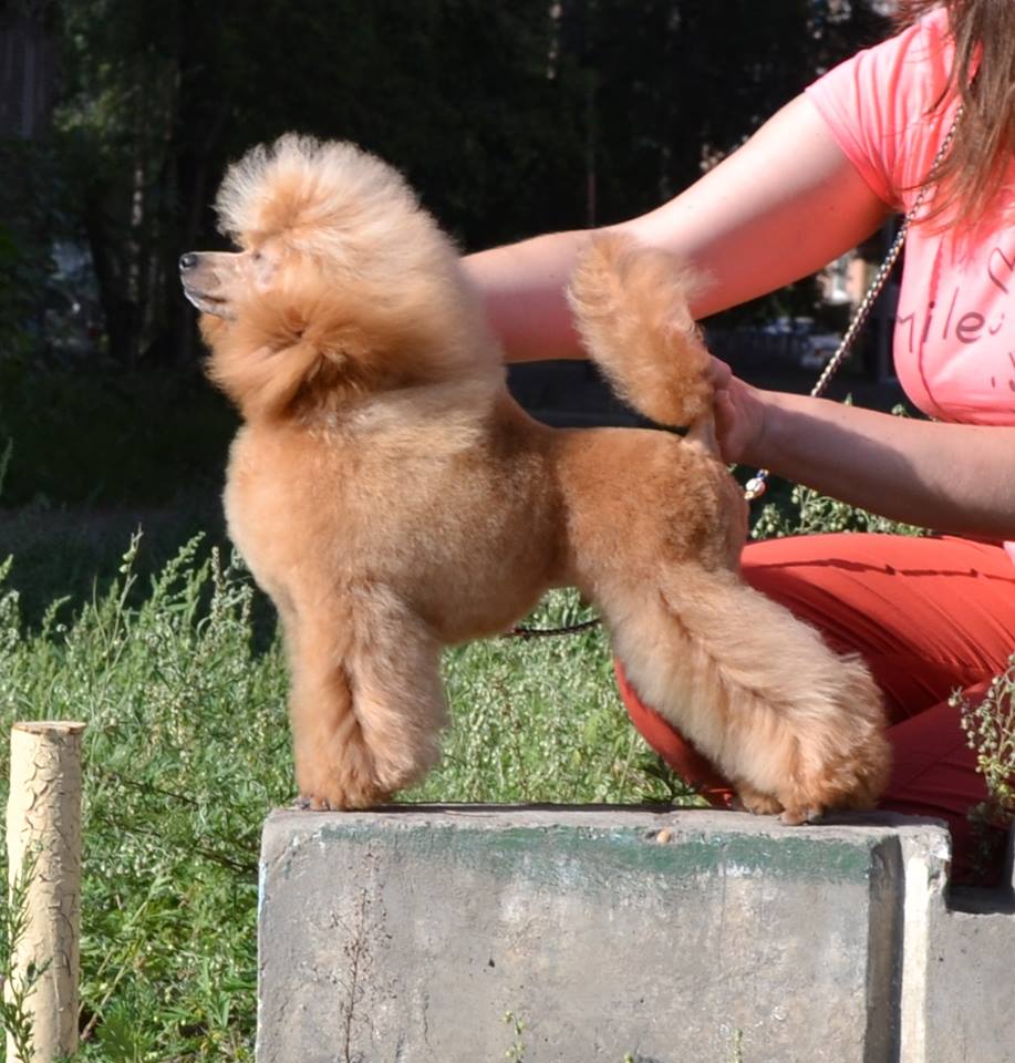 Junior Champion of Ukraine, Champion of Moldova, Montenegro, Bulgaria, Champion of Ukrainian Poodle Club, Champion of Ukraine, Сhampion of Luxembourg, Inter в оформлении м: apricot mini SUNNY SUMMER SUPERIOR WORLD JCAC _______________________________________