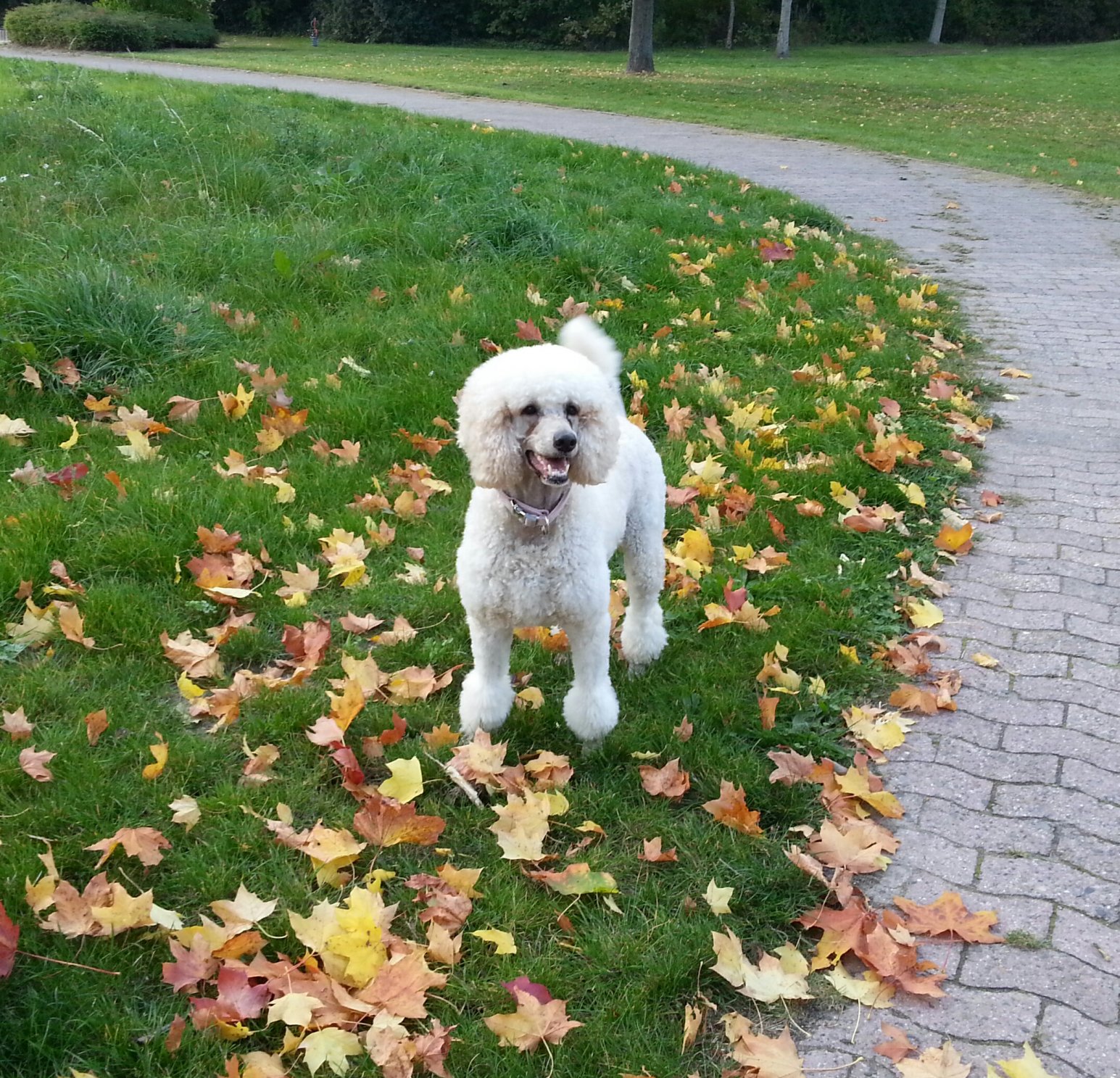 А у нас начался листопад! Марта на прогулке в парке! Довольная!!! |
