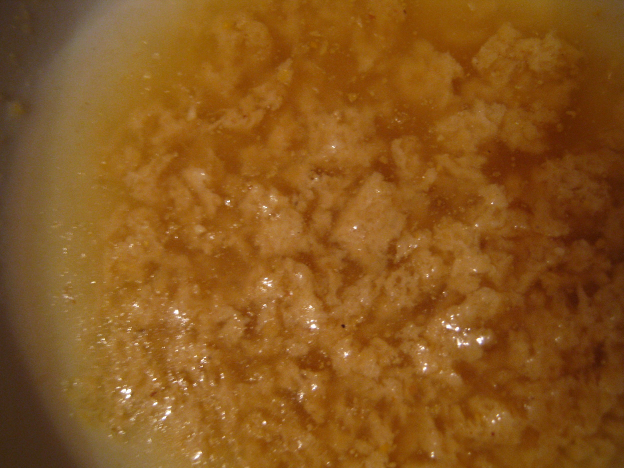 Сухой корм Биско Премиум. Рядом гранулка то ли тренера, то ли Роспес, ну, не помню, нашла на подоконнике. :) Заявленный состав: Говяжий фарш (рубец, легкие, обрезь) рис мясная мука животный жир кукуруза кровяная мука минеральные добавки семя льна сухая пульпа сахарной свеклы овощи дегидратированные пробиотики порошок цикория лекарственные травы микроэлементы витамины ![]() За ночь вот так размок: ![]() Размяла (сверху пленка жира - гранулы сверху очень жирные)): ![]() Осадок при ближайшем рассмотрении оказался зеленым, а не черным. Похоже, сушеные травы. ![]()