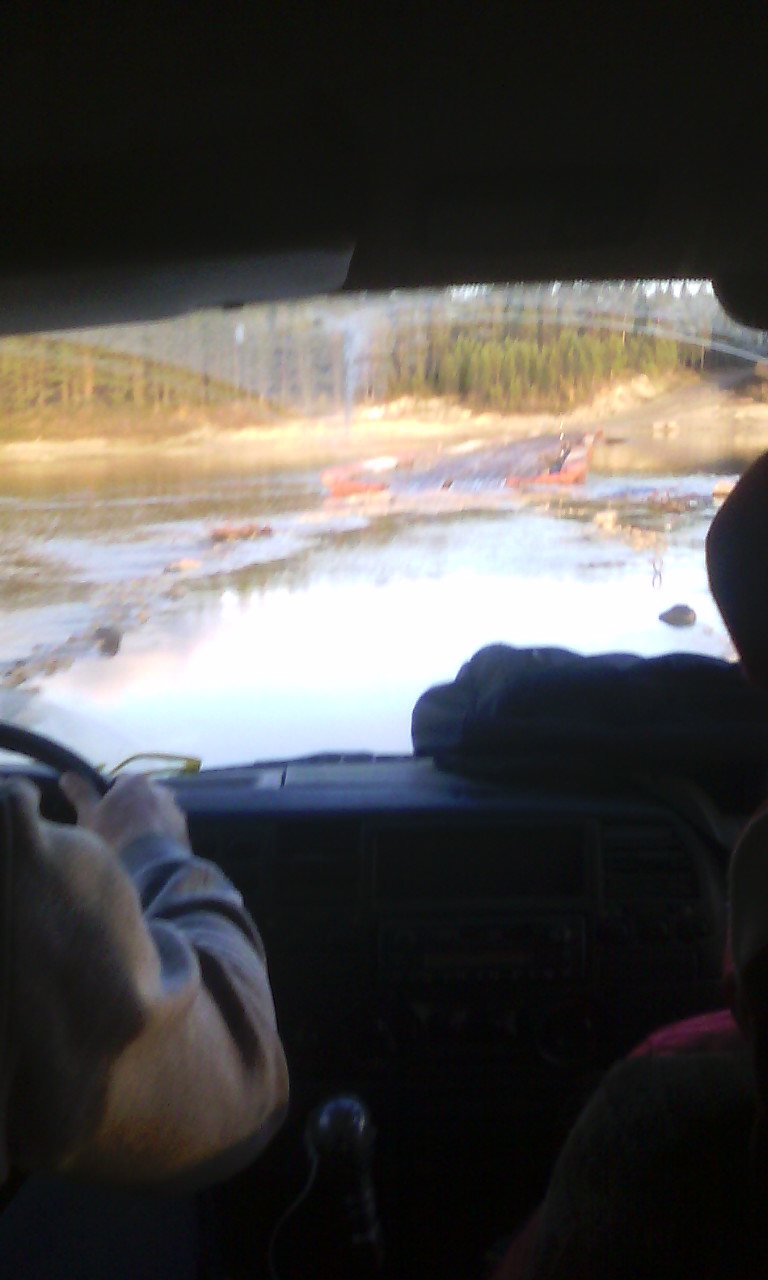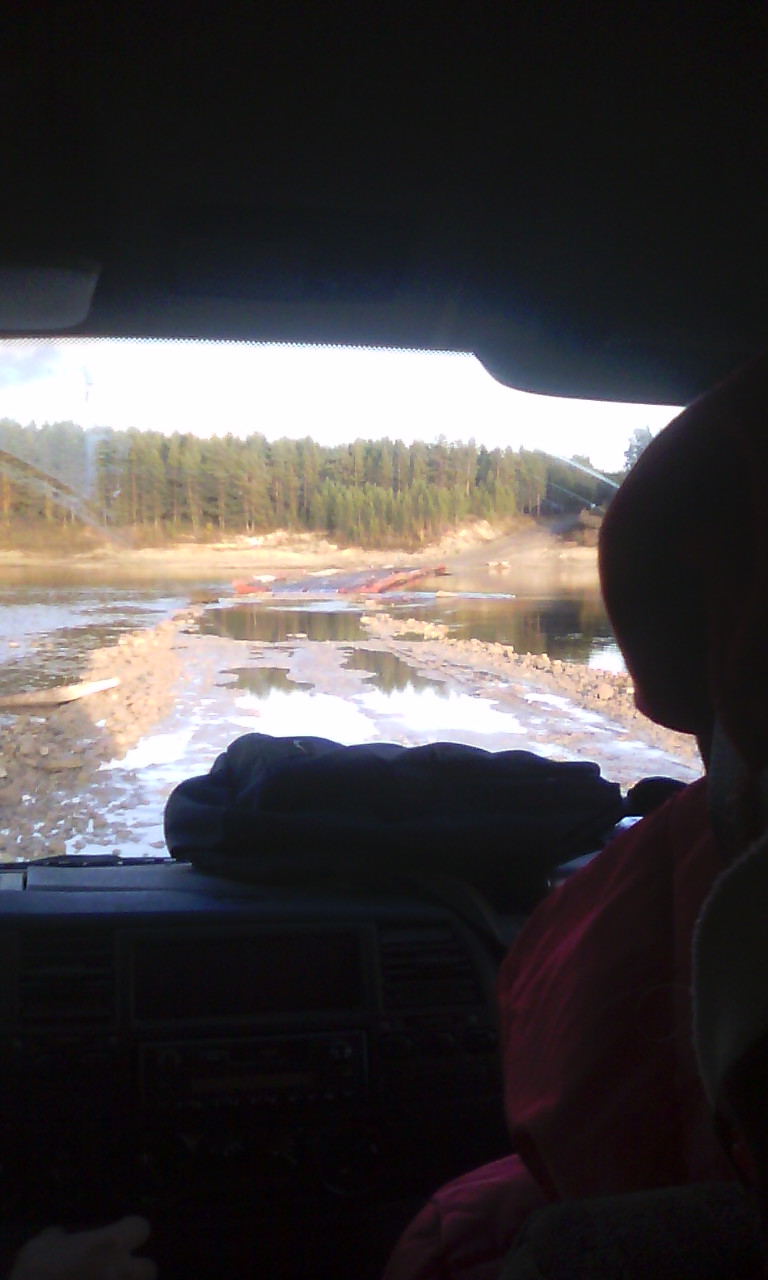 Сегодня у нас был переезд из Холмагор(родина Ломаносовая)в посёлок Карпагоры три раза пересекали реки Северную Двину в Усть -Пинеге на пароме,и два раза речку Пинега первый раз на канатном пароме, а второй по понтонному мосту.И какое у нас в России шикарное бездорожье.