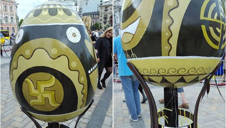 "Свастя" по-киевски: на Софийской площади установили яйцо со свастикой