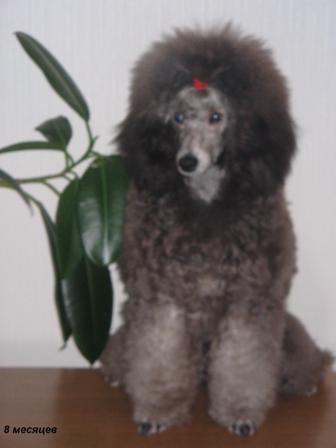 хех,первый пудель появился у нас когда мне лет 5 было,потом....через лет 5-6 наверно.....эх....его машина сбила,была очень сильная потеря для всей семьи.Мама нивкакую несоглашалась на собаку,но,в один прекрасный день я принесла Магистрика....мама встетила меня вот так- ,но уже через минуток 5 она умилялась какой он прелестный.Вот так всё было.Сейчас Маистру 18 ноября исполнилось 2 года,решии выставляться начать,вот отрастим шёрстку как нужно и пойдём(под руководством нашей любимой заводцицы,Елены Юрьевны Старчак)на выставку