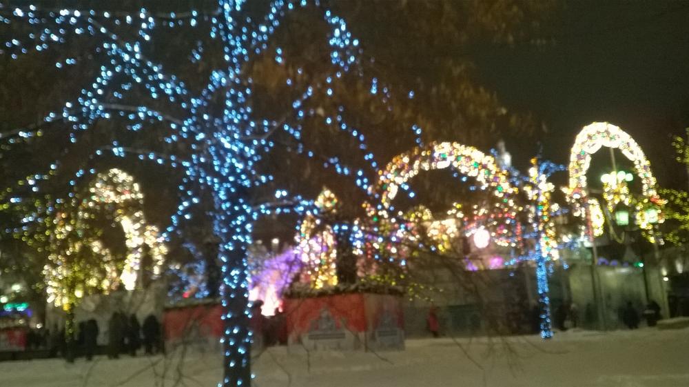 Вчера после школы с Машей ездили на м.Площадь Революции, где были устроены для детей всякие развлекательные бесплатные мероприятия) А так как 15 января обещали разобрать ледяную горку и всю красоту, то очень хотели прокатиться на ватрушке, погулять немного и полюбоваться световой иллюминацией.:) Мы были в полном восторге от горки и сверкающей красоты под Старый Новый Год ...)))