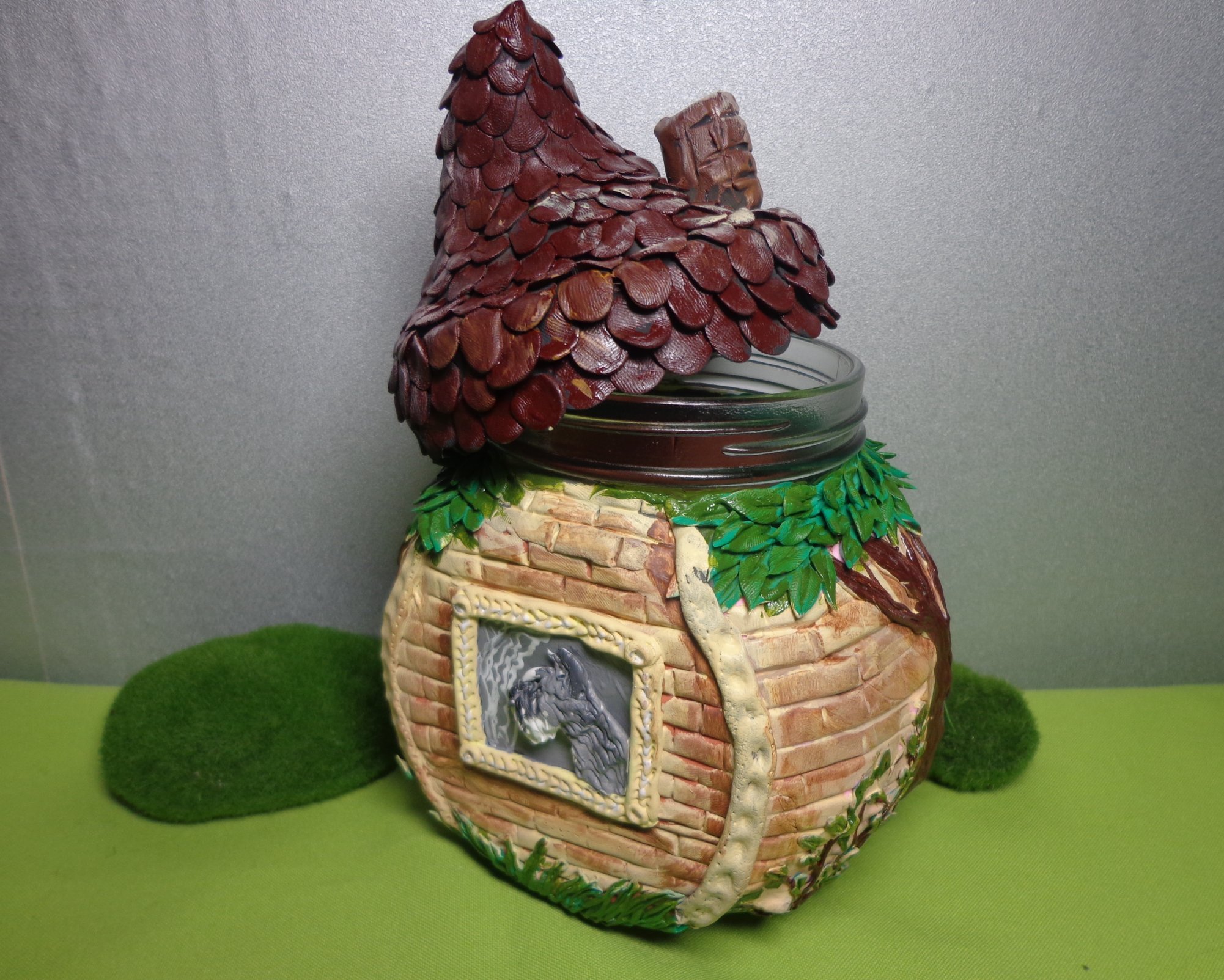 Ещё слепила ( давно хотела, но всё никак реализовать не получалось) баночку для разных нужностей в виде домика для любимых шнауцеров.