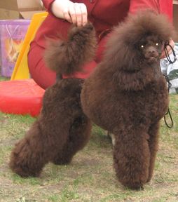 Коричневый карликовый кобель, д.р. 26.12.2001 Юный Чемпион Европы 2002, Чемпион Европы 2004, Интерчемпион, Юный Чемпион России, Эстонии, Латвии, Чемпион России, Эстонии, Латвии, Литвы, Балтии, Клуба Отец: Ch Int, Fin, Dk, N, S, Nord, Est, Lv, Lt, Balt, NordW-01, FinW-01, BaltW-01,02 EUGENIOS WOULD LOVE TO-TOO Мать: Ch Int, Lv, Est, Rus, Lt, Fin, Pl, EurW-00 NUTLEE TIMARI HAUTE COUTURE _______________________________________