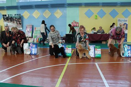 В воскресенье с другой машиной, компанией и погодой мы поехали в Воронеж. Если в субботу мы ехали и смеялись, что Аня нас на море загорать возила т.к. ехали через липецкое море и в Тамбове было жарко. Правда вместо Я. Гавриловой была Филатова. То в Воронеже было наоборот- эксперт Я. Гаврилова, но ветер и холод. Начальник нашего клуба разговаривала с Я. Гавриловой по поводу судейства на монке в ноябре- к сожалению Яна Адольфовна занята. Итак, про результаты пуделей. Миниатюрный коричневый Аксель с липецкой слободы получил первый ю.сас, лпп. Все у него было первый раз- такая длительная поездка, толпа совершенно незнакомых людей, зачем по площадкам бегать. Но Малыш хвост не опустил! Миниатюрный абрикосовый Гордый Лев Егорка Любовь моя, г. Воронеж получил последний ю.сас! Если не ошибаюсь- это первый выпускник питомника "Гордый лев" который стал Чемпионом. Вот я ещё с силами и временем соберусь и ещё одной выпускнице питомника, тоже дочке нашего Каспера Фамильной драгоценности,Калинке закрою чемпиона. Ну, и тои- лучшая сука, сас Гордый Лев Волшебница Лея ( дочь Кузи). И Бисер Касперович, он же Казбек-ю.сас,лпп, закрыл юного чемпиона России. Гаврилова сказала - в бэст группы не выбрала потому что стрижка не по стандарту, чуб короткий. До взрослого класса нарастит! Надеюсь в новом доме )) _______________________________________