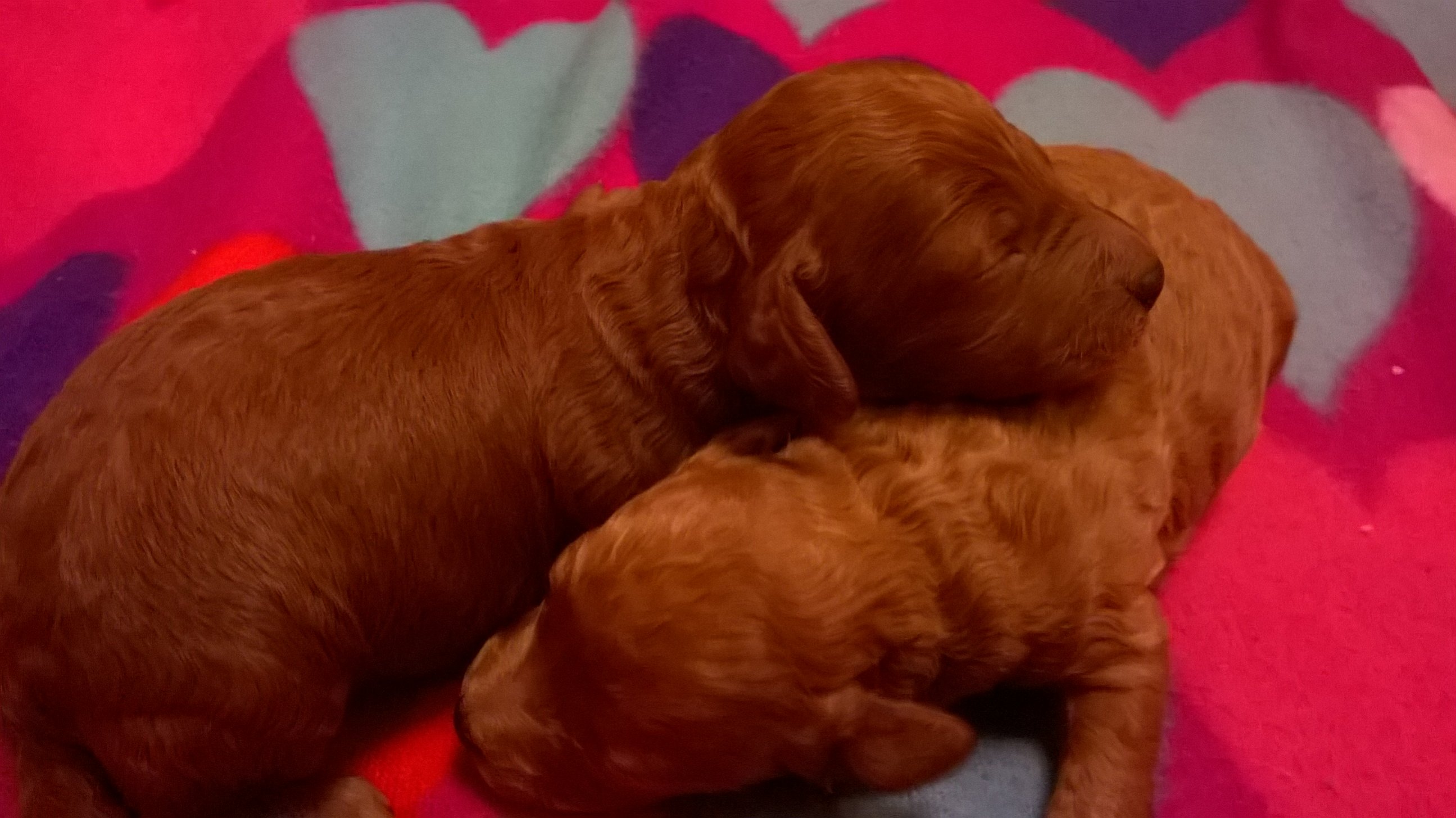Мама и сама была очень яркой для абрикоса, но сейчас стала светлее. Щенки скорее малые, чем миники - папа дает потомство в маму, а..... может и будут миники - тоже хорошо)))