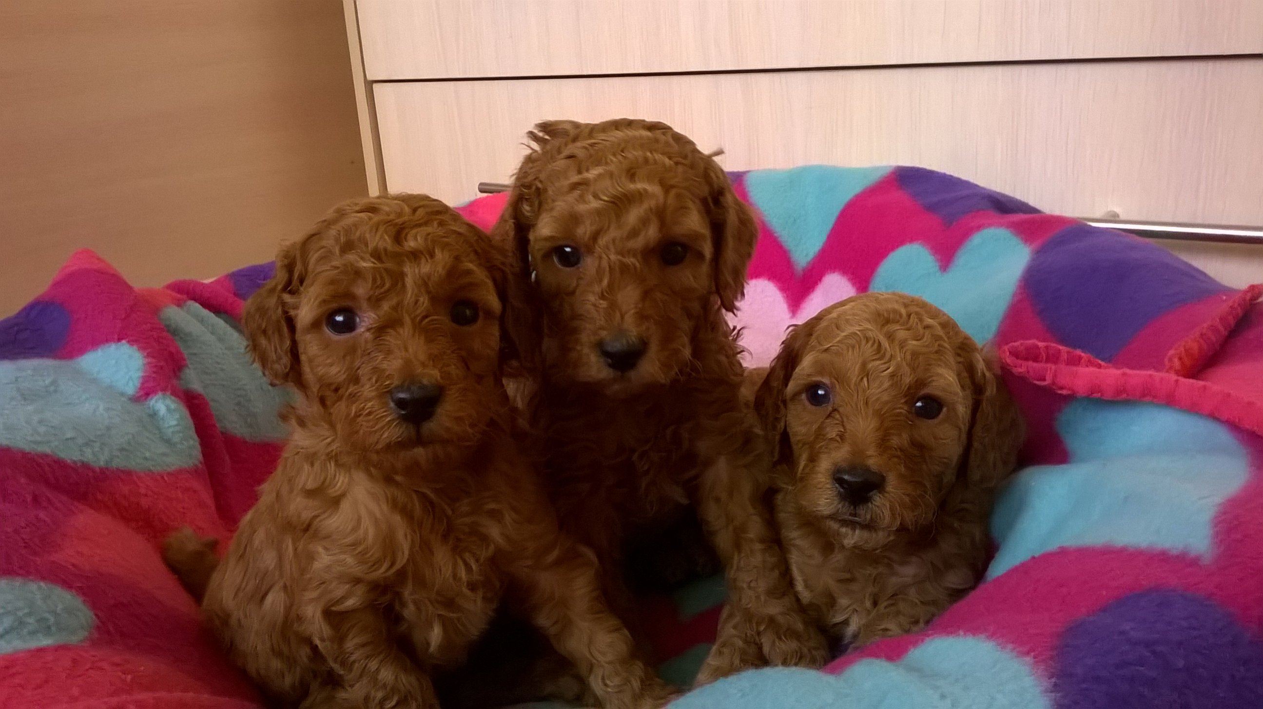 Щенки малого пуделя абрикосового и красного окраса. Дата рождения 17.01.2018г. 3 кобеля (1 красный, 2 абрикосовых), 4 суки (2 красные, 2 абрикосовые).