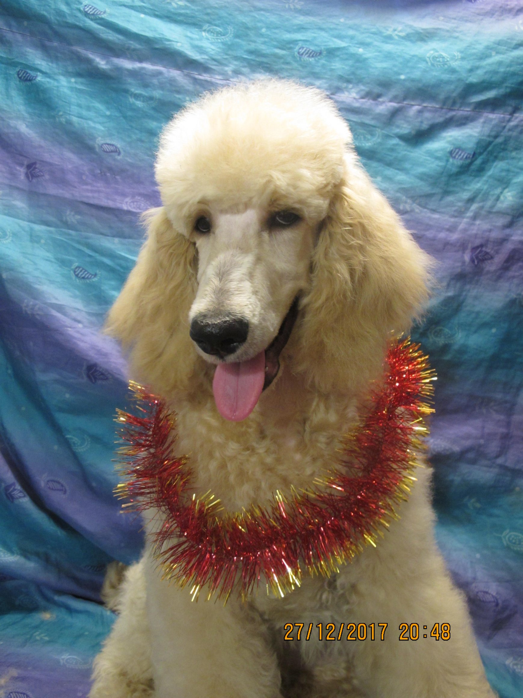 Алкмена Прекраснейшая, дома Лиза - большой пудель, пегого, бело-черного окраса (арлекин).