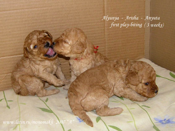 Помёту "А" сегодня исполнилось ТРИ НЕДЕЛИ!!! Они довольно бойко передвигаются, интересуются друг-другом. Начали проявлять интерес к маминой миске. Артоша (бывший "довесок") по развитию от них не отстает, тоже вполне твердо стоит на ножках, тоже начал ориентироваться и двигаться к заинтересовавшему его объекту. Но он все-же намного меньше своих однопометников, поэтому по-прежнему живет и благоденствует в помете "Б". (они тоже его крупнее, но не такие бойкие, все-таки на 5 дней младше). Вот посмотрите на помёт "А" в полном составе. Специально для съемки подсадила к ним Артошу, пока Светланка ела. _______________________________________