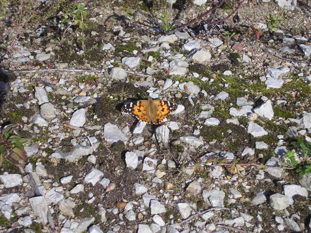 У меня сегодня вот такой "улов" Новых фоток Это бабочка, присела погреть на солнышке свои крылышки))) Она приземлилась на камушек и расправив крылья развернула их к солнцу. |