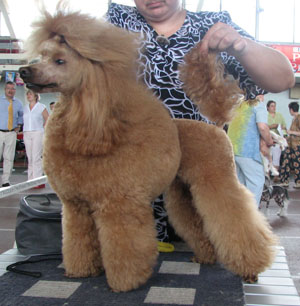 Этот щенок З.к. Гран При Хотя один эксперт (на монопородке) предложила перевести его в красные. А вот на первой фотке лежат две суки. та что светлая так и не перецвела, осталась кремовой. Фото Гран При в Самаре в этом году, держит его Т.Мичурина |