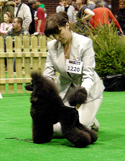 Не помню, кто нас судил, какой-то Лоран .... из Люксембурга (завтра возьму каталог и скажу), ехали под Пешара, вот под ним бы я повыставлялась. Он всех гонял по 3-4 круга и искал объем в собаке. А нам даже по кругу побегать не дали при индивидуальном осмотре! Серый юниор очень понравился, остальных не очень смотрела, честно говоря....сук вообще не смотрела... Ребенок мой худоват, на мой взгляд, ставить его хозяйка не умеет, в движении он придуряется :) догоняет впереди идущего и пытается играть. Но смотрится очень хорошеньким. Финны довольны, многие заводчики им заинтересовались и к ним подходили :) Ребенку дали кубок и две розетки. А про бест щенков мы забыли!!! Вот мой недоразвитый для трех лет Венька в субботу, расставил, блин, свои передние ноги Апрелька добавил(а) [date]1201696337[/date]: Ирочки (Фиона и Роза), спасибо за приглашение! Роза, жалко, что не увиделись. Ну, Евразия скоро У меня есть немного фоток Марика и Яника, и еще кого-то...сегодня вечером все повырезаю и покажу :) _______________________________________