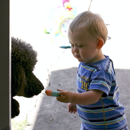 До этого Марик пытался накормить Брайта щепками от погрызеной палочки... Брайт вежливо брал и выплевывал :) _______________________________________
