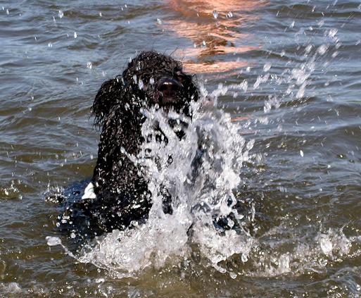 Когда Кирюшенька купалась первый раз, в Озерске, то мне несколько раз приходилось вытаскивать ее из под воды, т.к. собака плавает не так как надо Она плывет не параллельно, а вертикально, типа солдатиком и машет лапами в разные стороны, поэтому иногда она подводу немного уходила.