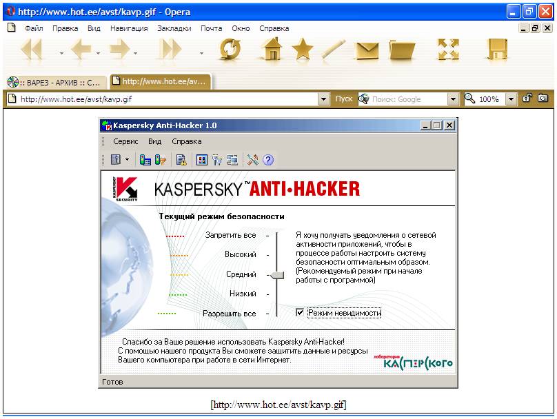 "Kaspersky AntiHacker"(С ADSL модемом не работает)