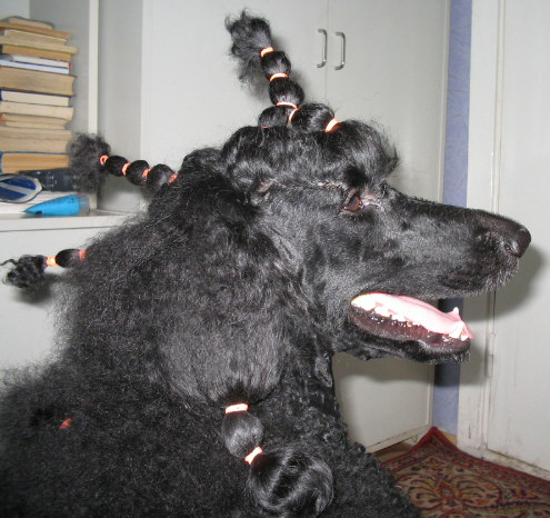 А вот шампунем из второй серии (универсальным) только что вымыла черного малого пуделя, вроде неплохо на первый взгляд. |