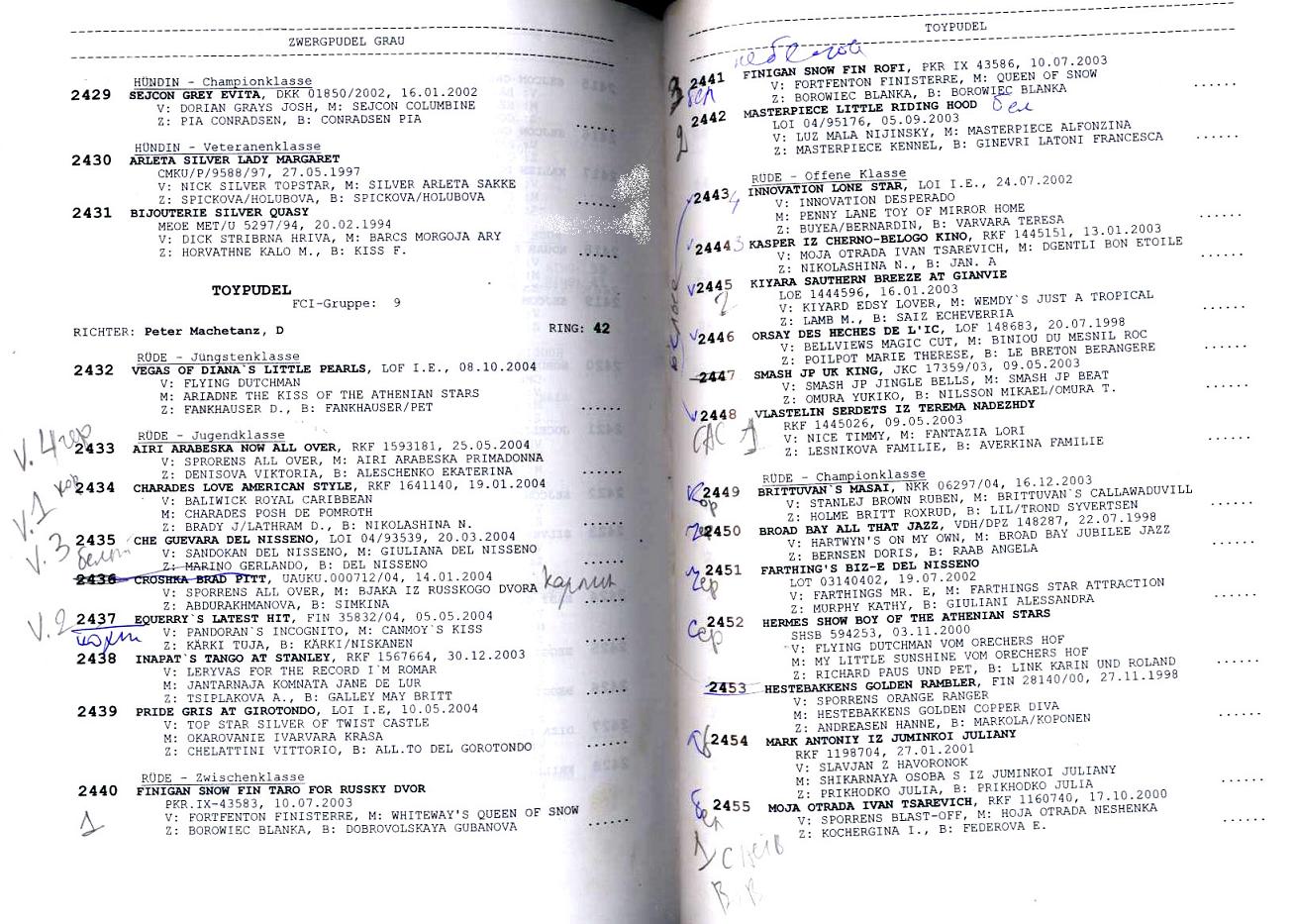 В ринге юниоров сук мне понравилась одна девочка, которая стояла последней, наверно ее и имела ввиду Серенада в своем рассказе. В каталоге ее нет в этом классе.
