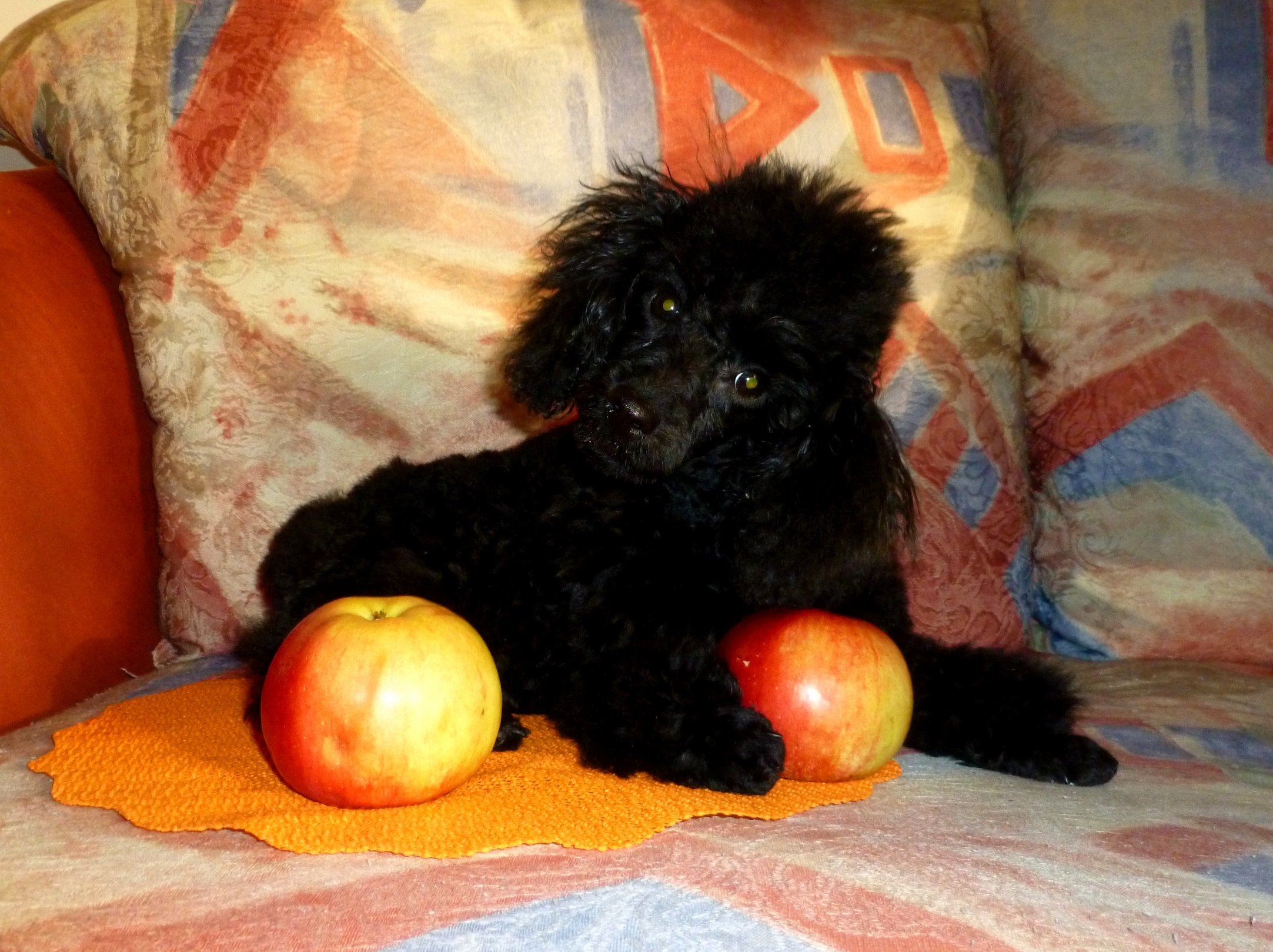 ![]() Да, неугомонная, веселая, любопытная... Можно долго перечислять. Очень красивая в движении, резкая, но грациозная. Некоторые друзья (и даже ветеринар в клинике) интересовались, нет ли у неё в родне кошки , имея в виду её гибкость и прыгучесть))))) Очень надеюсь смонтировать видео как-нибудь. Прыгает на всех четырех лапах от радости))) Запрыгивает куда угодно. Очень быстро бегает. Красиво гарцует, как лошадка. Страх как таковой у нас тоже отсутствует пока, не пугают ни чужие люди, ни большие игрушки, незнакомые предметы вызывают дикий восторг и изумление.Как будто уже родилась с командой "апорт", также изучила "принеси", "дай", "нельзя" (но вот с этим потруднее гораздо, так как характер свободолюбивый), "сидеть", "место", "ищи"... А нам ещё 3 с половиной месяца... Что удивительно - различает игрушки по названиям. Несет петушка, к примеру. Я ей говорю: "Ася (дома так зовем её), принеси косточку!" Она выплевывает петушка и бежит искать косточку. Или поросенка. Или мячик))))![]() Любит охотиться: выслеживает добычу, крадется за ней, ползет, а потом - прыгает и хватает;) Активно пытаемся отучить кусаться , надеемся справиться. Готова общаться 24 часа в сутки. Учитывая наше большое семейство - "Асятины" хватает на всех![]() ![]() С яблочками фото делали не случайно! Вспоминали, что первый раз мы её увидели на фотографии именно с яблочками (которую вы нам тогда присылали)))))) Теперь девчушка подросла.Привет большой Перчику и Викки: они очень красивые, нарядные и замечательные)) Тем более они для нас родня теперь)))) надеюсь появляться на форуме почаще.